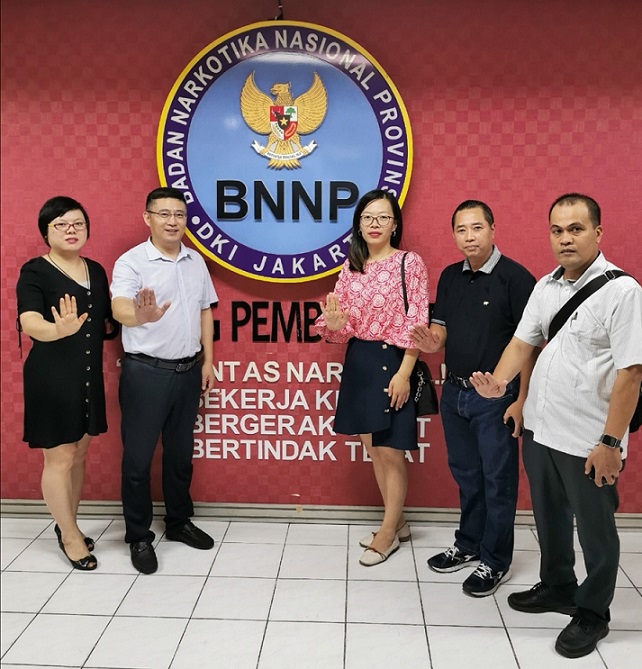 在印度尼西亞期間,我公司代表團和由國家禁毒委員會副秘書長、中國禁毒基金會秘書長李憲輝率領的國家禁毒委代表團一起參觀了印度尼西亞麗都國家禁毒中心所屬的禁毒培訓中心、國家毒品實驗室和禁毒康復中心,了解了印度尼西亞毒品預防教育、禁毒培訓、毒品濫用監測、和戒毒康復等工作情況。同時應客戶邀請下,國家禁毒委同我公司貿易團隊一起參觀了客戶公司,了解毒檢產品在印尼市場的銷售情況。