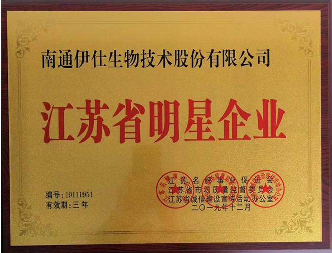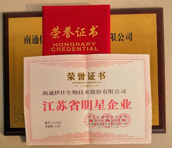 南通伊仕生物技術股份有限公司榮獲江蘇省明星企業(yè)稱號 |
