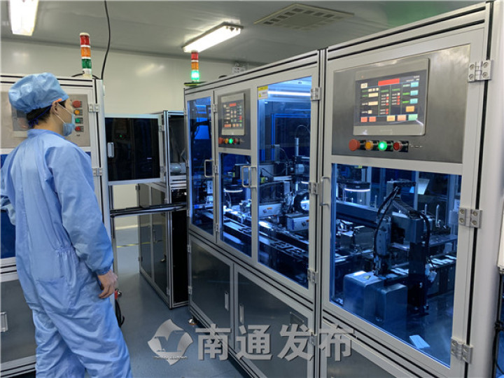 10月30日,南通伊仕生物技術股份有限公司生產車間內,一臺臺自主研發的全自動化設備馬力全開,零星的幾個工作人員身穿潔凈防護服,只需動動手指操作控制面板。分切、組裝、入袋包裝、批號打碼……一個個小小的試劑板從這里誕生,被運往世界各地,日產量約170萬人份。
