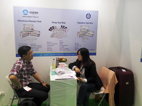此次展會公司主要展示了自主研發的診斷試劑和分析儀。優生系列,腫瘤標志物,傳染病系列,毒品系列還有 酶免系列。
